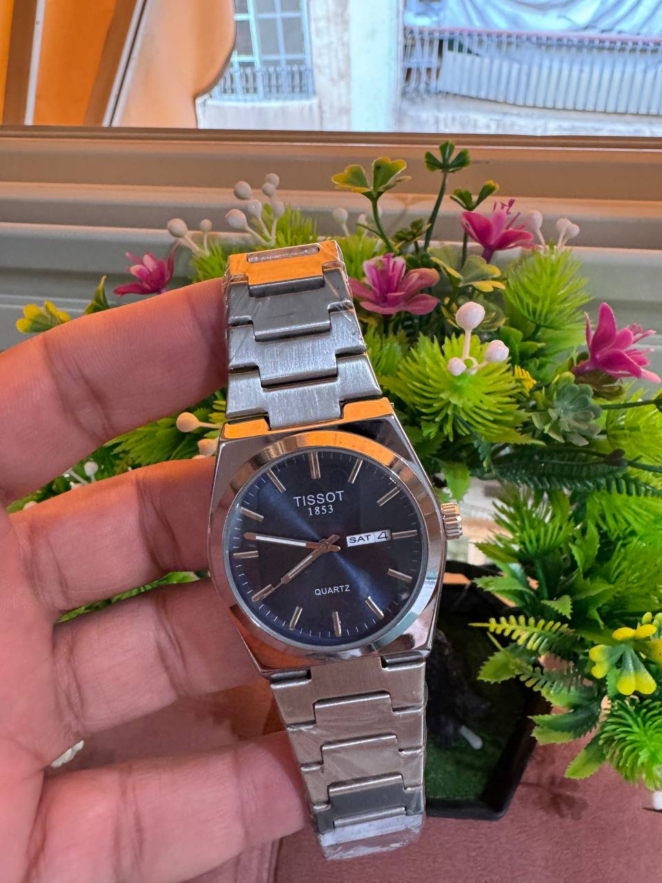 ساعة Tissot Quartz بتصميم أنيق من الفولاذ المقاوم للصدأ مع عرض التاريخ واليوم – خيارك المثالي للأناقة اليومية.